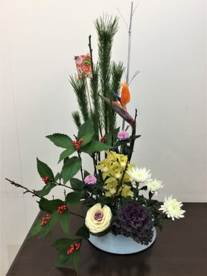 今ではおなじみの水盤と剣山を使ういけばなです。
